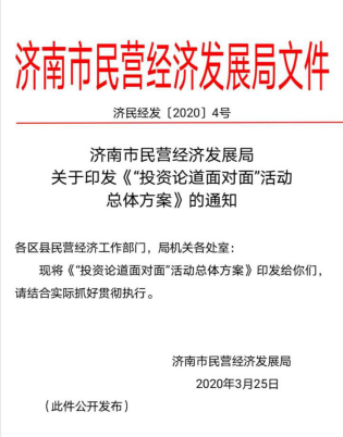 “前两期‘投资论道面对面’活动,可谓‘小试牛刀’,没想到企业家们参与的热情如此高涨,坚定了我们持续办下去的信心。”济南市民营经济发展局局长靳磊说。作为今年的一项重点工作,市民营经济发展局以民营企业需求为导向,总结前两期的经验,加强顶层设计,于该局成立一周年之际,出台《投资论道面对面活动总体方案》。以有股权融资、债券融资需求的民营企业为重点,实行“资本、资金、资产、资源”四资并举,“政府部门、专家学者、行业协会、投资机构、民营企业”五方联动,线下、线上相结合,主题沙龙、面对面对话、融资路演、洽谈签约等系列融资服务活动深入展开。