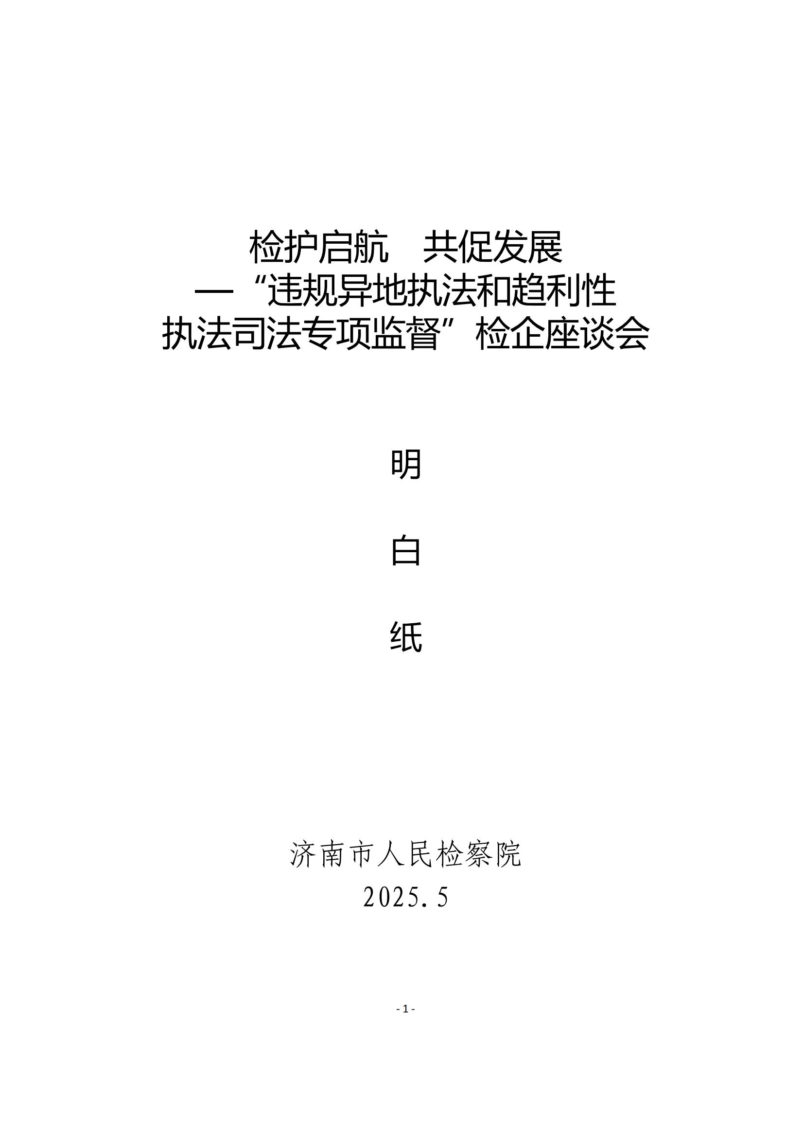 检护启航共促发展—“违规异地执法和趋利性执法司法专项监督”检企座谈会明白纸